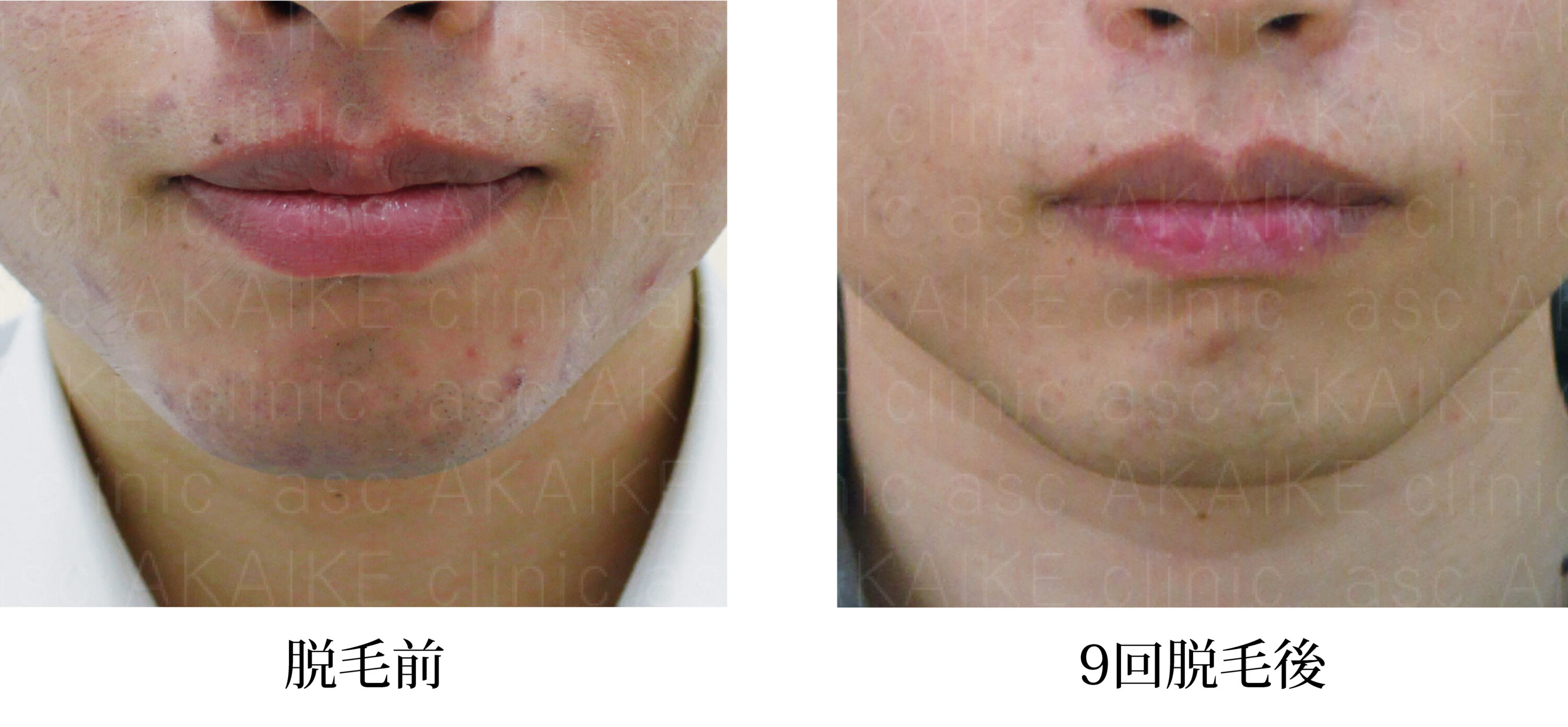 アカイケ脱毛は男性のヒゲに最適な脱毛機器を使い施術しますので、一般的なクリニックの脱毛よりも少ない回数で脱毛完了できます。多くの方は5回の脱毛後から減りを実感し、7回から15回の脱毛で毎日のヒゲ剃りが楽になったと実感されています。