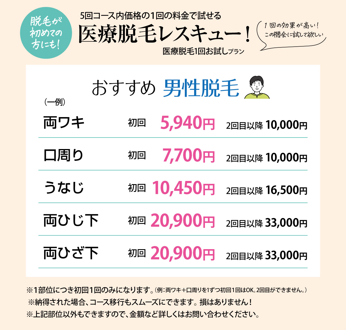 ヒゲ脱毛価格表
