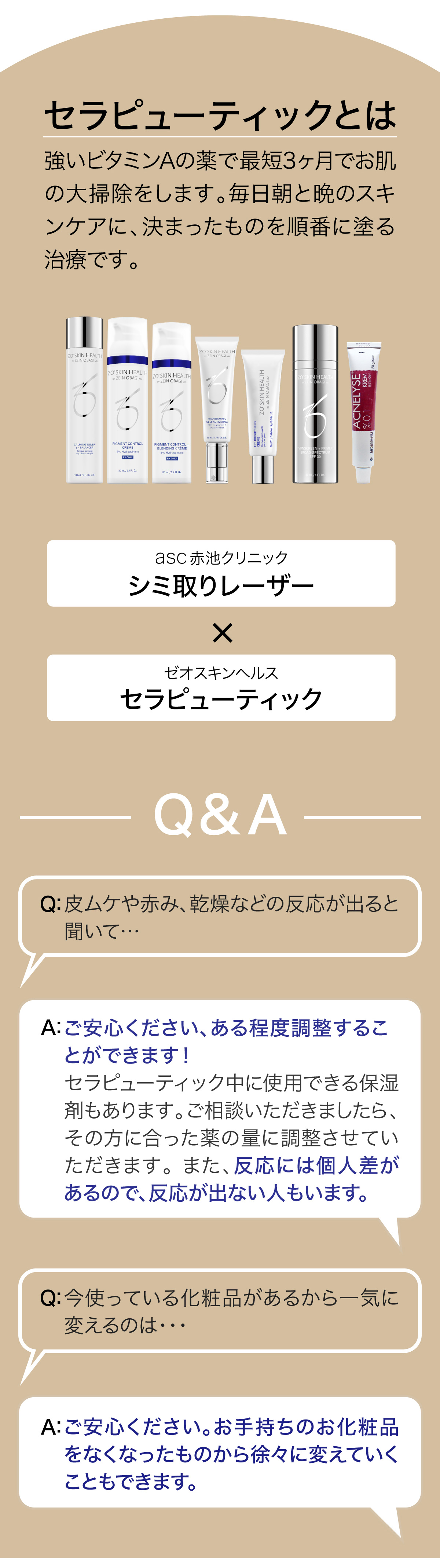 ゼオスキンヘルス・セラピューティック、エンビロントリートメント:一時的に赤み・かゆみ・肌表面がカサカサになる場合があります。その後、瑞々しい肌に生まれ変わるので、ご安心ください。